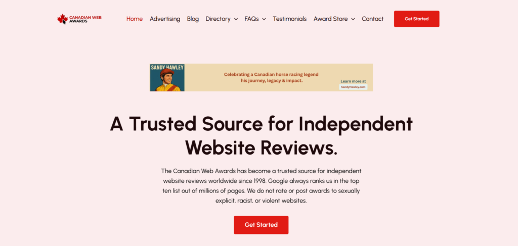 CanadianWebAwards.com is an online platform that has evaluated over 27,000 websites since 1998, offering free independent ratings, digital certificates, and an awards-based directory. It functions primarily as an authoritative, foreign-hosted web awards and review service for Canadian and global sites.
