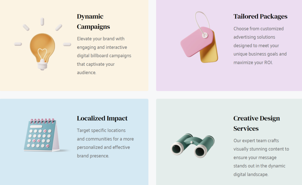 Elevate your brand with Digital Billboard Ads. We offer affordable digital billboard advertising on high-profile TVs in local businesses. From creative design to real-time analytics, our tailored packages maximize your ROI and localized impact. Captivate your audience and grow your business today.